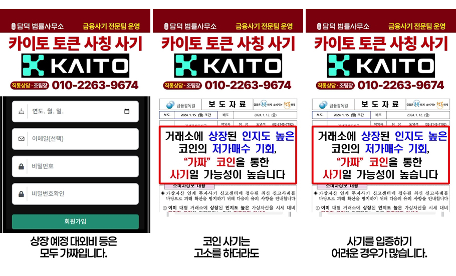 위 두 사이트는 모두 카이토 코인을 사칭한 사기 사이트입니다.